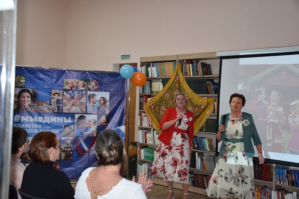 Библиотекарями была подготовлена интеллектуально - развлекательная программа «Россия от края и до края». Особое внимание было уделено народным промыслам, праздникам и традициям разных народов, которые переплетаются, обогащая друг друга и делая нашу общую культуру еще более яркой и близкой. Это мероприятие подчеркнуло важность воспитания уважения к традициям и ценностям всех народов России, укрепления патриотизма и гордости за свою Родину. В библиотеке была оформлена выставка декоративно прикладного творчества, подготовленная сотрудниками Центра воспитательной работы и детского творчества и районного Дома культуры.