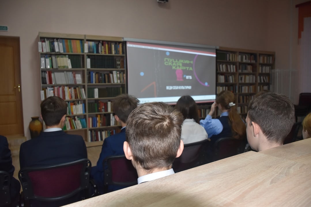 Библиотекарь рассказала учащимся о том, что «Пушкинская карта» позволяет молодым людям от 14 до 22 лет включительно приобретать билеты на культурные мероприятия за виртуальные деньги, начисленные на специальную банковскую карту. Ребята узнали, что с 1 января 2026 года банк ВТБ станет оператором программы «Пушкинская карта». Карты, выпущенные «Почта Банком», будут действовать до 31 декабря 2025 года.