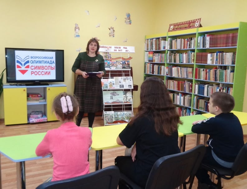 30 октября сотрудники центральной детской библиотеки для обучающихся Краснинской средней школы 5 «Б» (учитель русского языка и литературы: Давыденкова Т. Н.) провели первый этап Всероссийской олимпиады «Символы России. Великая Отечественная война: путь к Победе». Ежегодную олимпиаду проводит Российская государственная детская библиотека.
